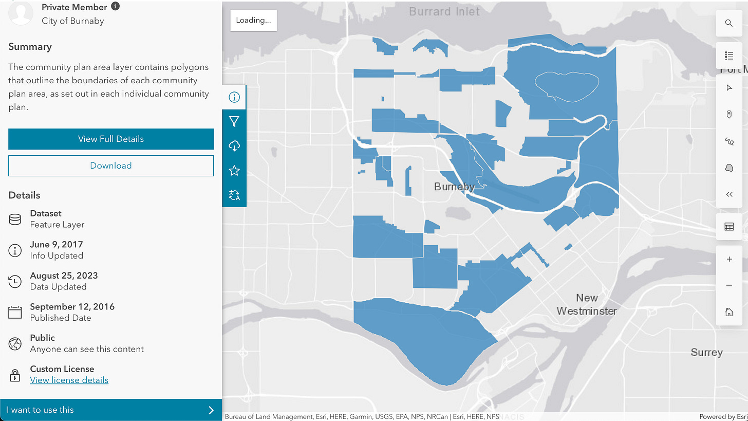 I first went to the internet, hoping to find an open data platform like I did with Vancouver. Nothing. The closest I found was this Community Plan map from Burnaby’s Open Data Portal: